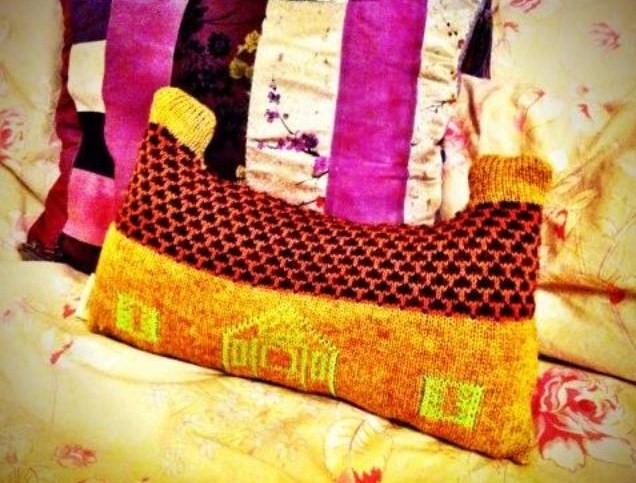 i gave my pal Vivian one of my crofthoose cushions recently as she was going back to Uni on the mainland after Summer. I asked her how the cushion was settling in and she sent me this picture..