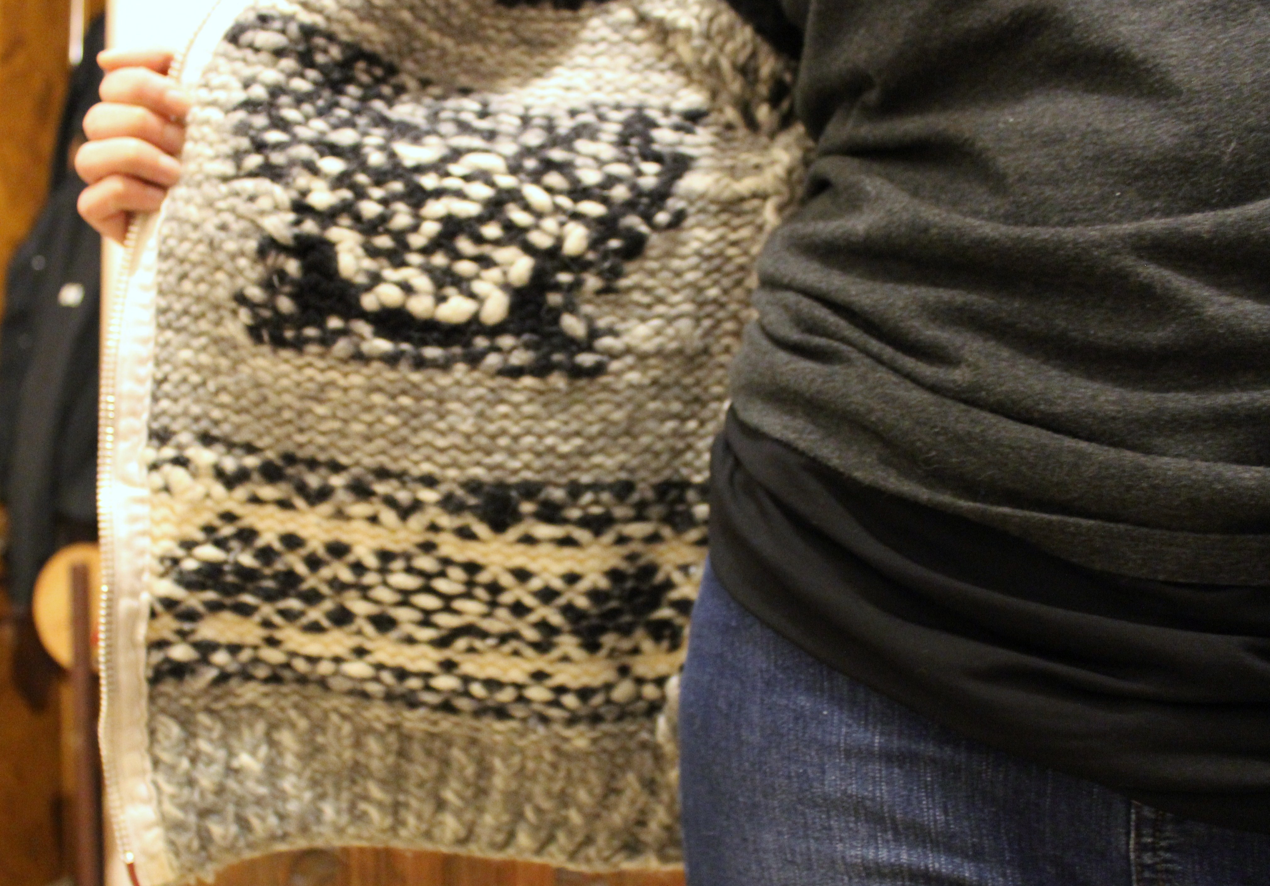 It is a very classic Cowichan cardigan and I’m really pleased I bought it, its a bit big but not overly so and I could definitely wear it as a jacket. Literally wearing it for 5 minutes to take these photos made me very warm and in my house that’s something!