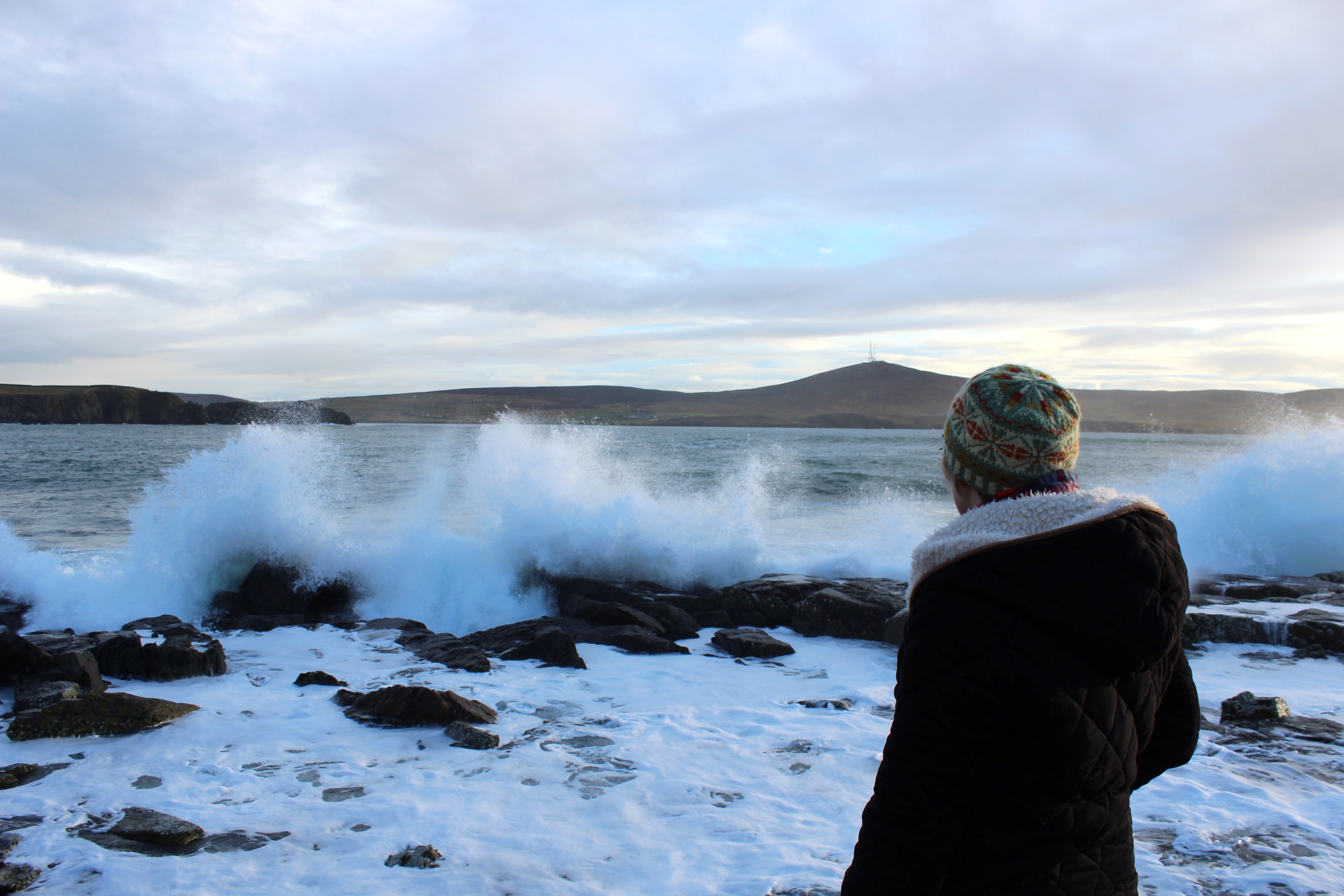 We have had our usual Shetland Christmas weather.. windy and rainy. Yesterday was a dry and bright day so me and Mam went for a walk along the Sea Road. The strong winds from last week have kept the swell strong and we saw some good waves