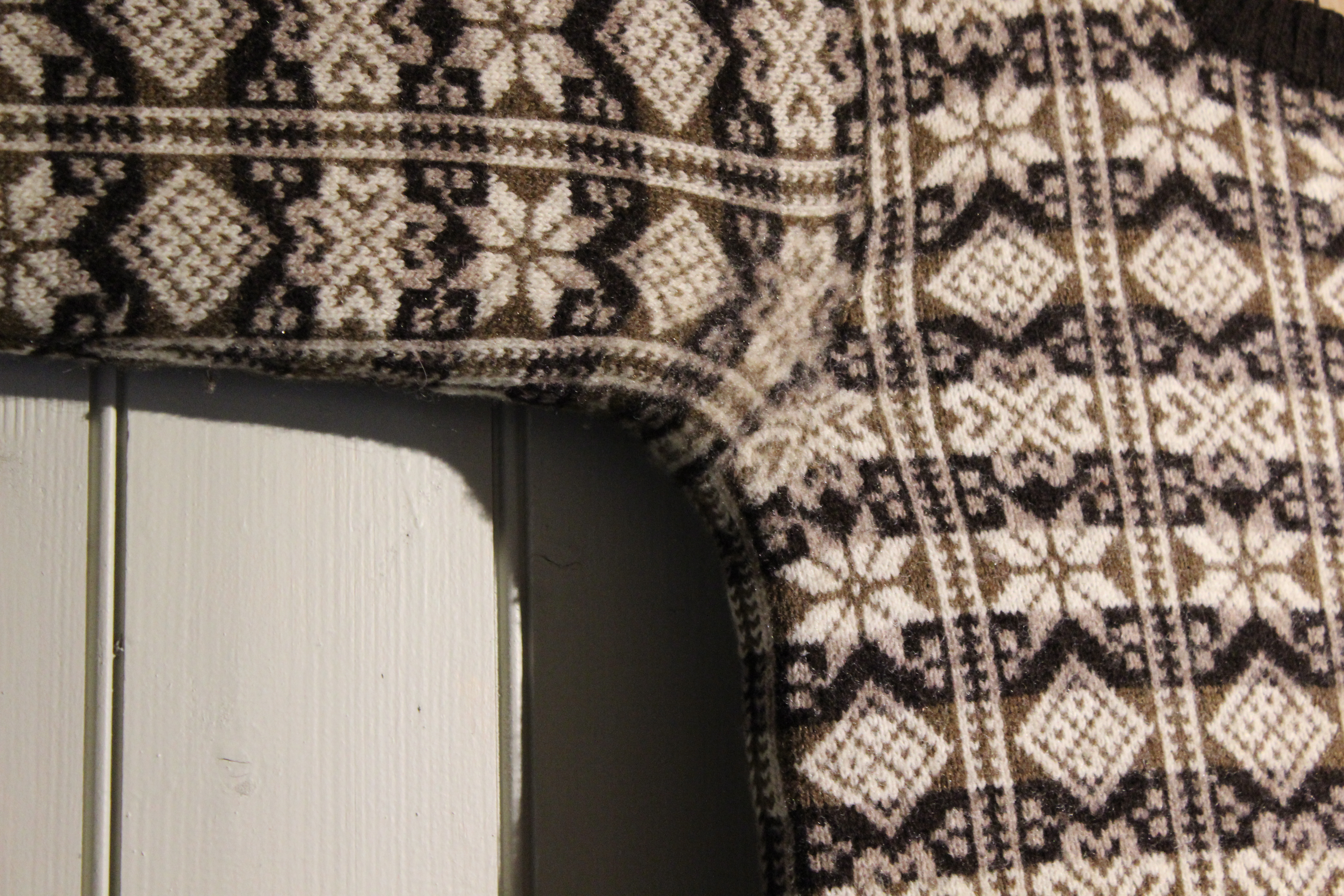Of course yokes feature predominantly. What can I say? I have a problem. The Fair Isle yoke has huge variations, look in any Fair Isle pattern book and there will be pages of Norwegian stars to choose from. It enabled knitters to make a Fair Isle item without hand knitting the whole thing. As a general rule the bodies and sleeves are machine knitted using a v-bed or double bed machine and then the yoke is picked up and hand knitted. Of course that is all a lot easier said than done (I’m currently knitting one and I can confirm this) but it made a quicker and effective yet traditional Shetland item to sell.