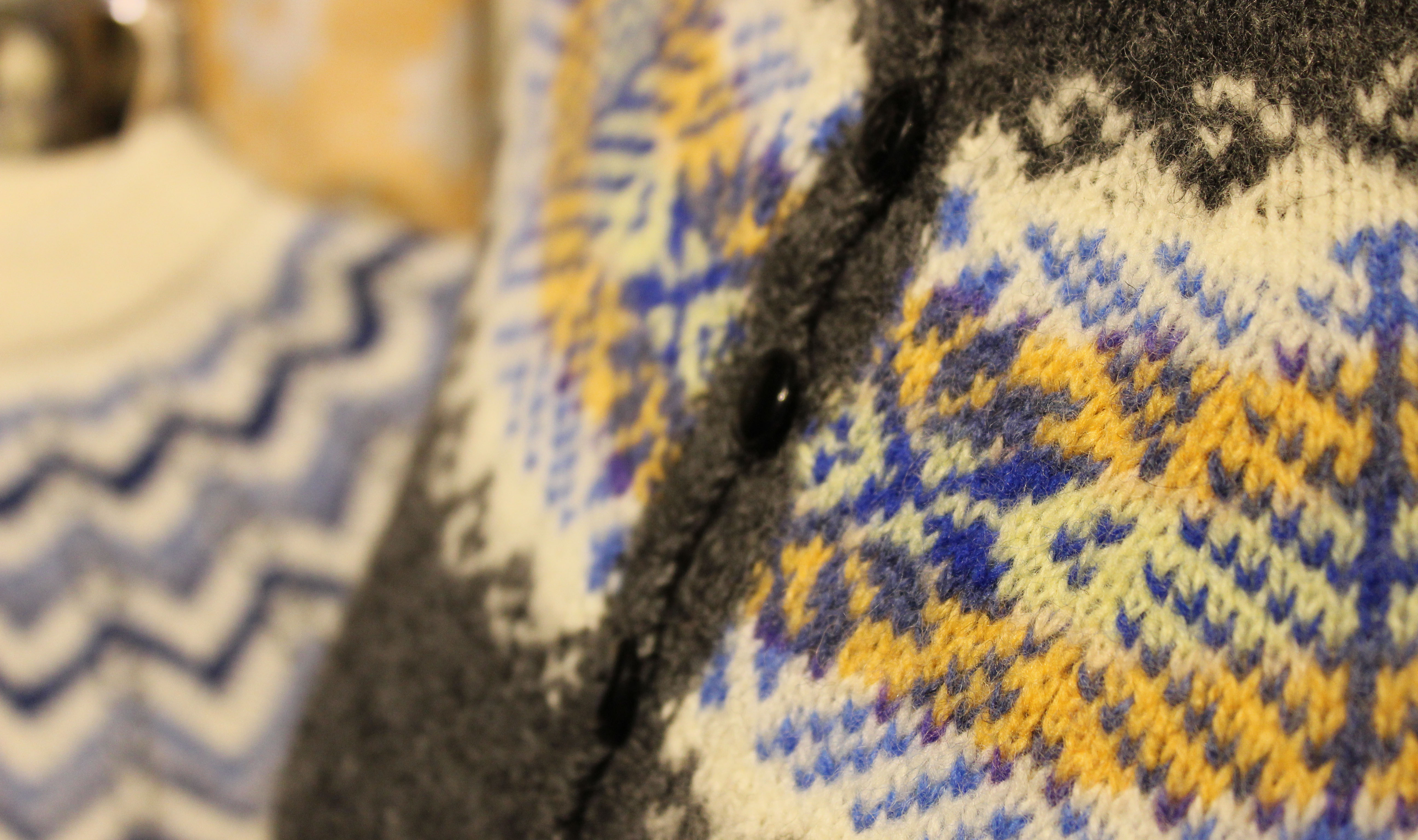 One of the things that I think is the best thing about Shetland knitwear is how innocently amazing it is. I wanted to focus on everyday things that people wore. Now these are not boring or plain things because everyday knitwear in Shetland is not boring. But some of these things have probably not been in an exhibition before because they are everyday. I was not strict about the things being made in the Oil Boom but the items had to encircle the idea and theme of the time and have been worn in that era.