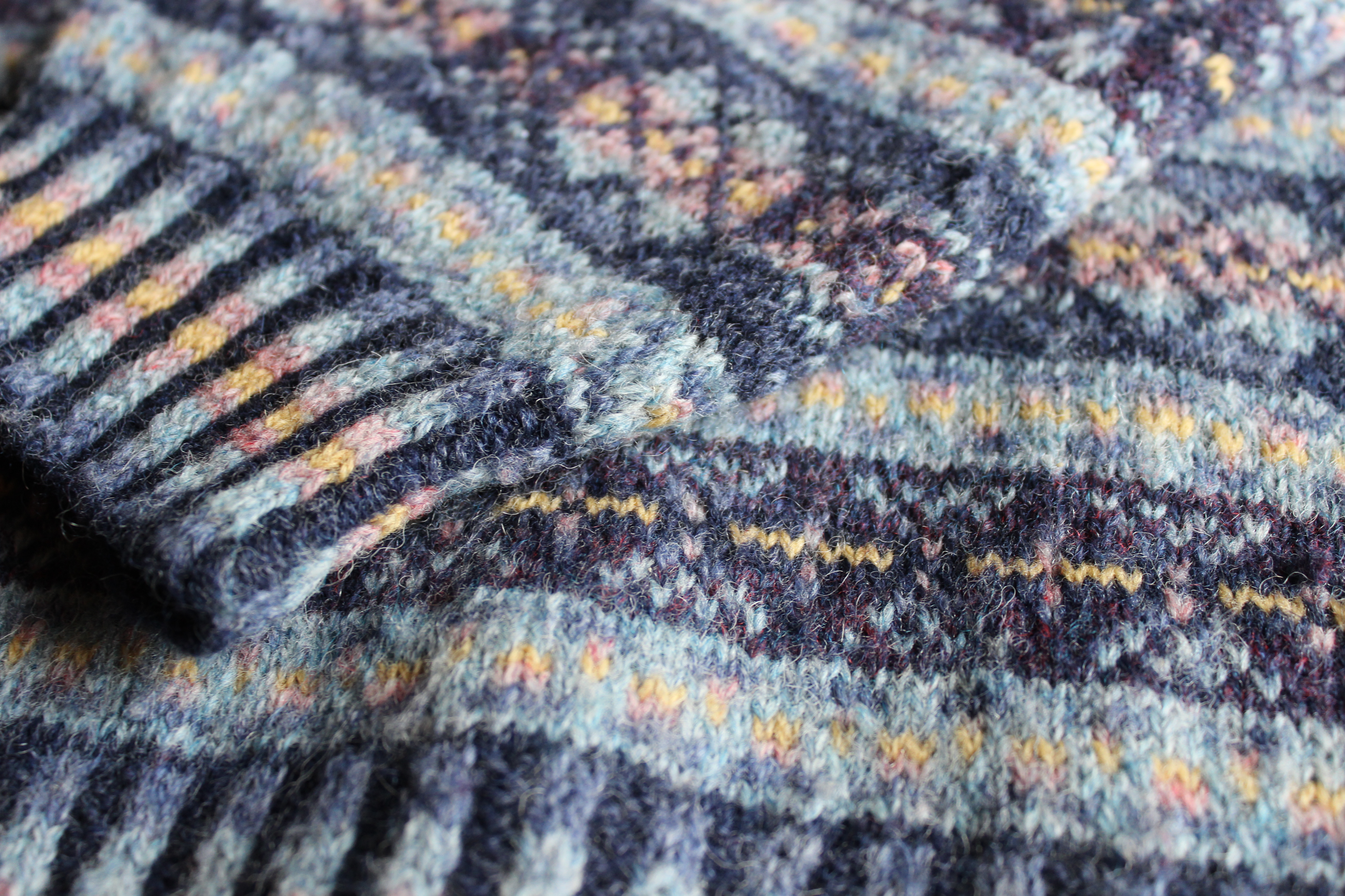 It is very well knitted and as far as I can see they have knit it in the round up to the armholes then gone back and forth (I cannot deal with purling Fair Isle, hats off to anyone that can keep track!) and picked up the sleeves. These colours are not my personal first choices but they have been blended very well and it actually makes for a very lovely and subtle jumper that I’m sure I’ll get a lot of wear out of. Look at that corrugated ribbing! I wish it wasn’t so tedious to knit, I love how it looks.