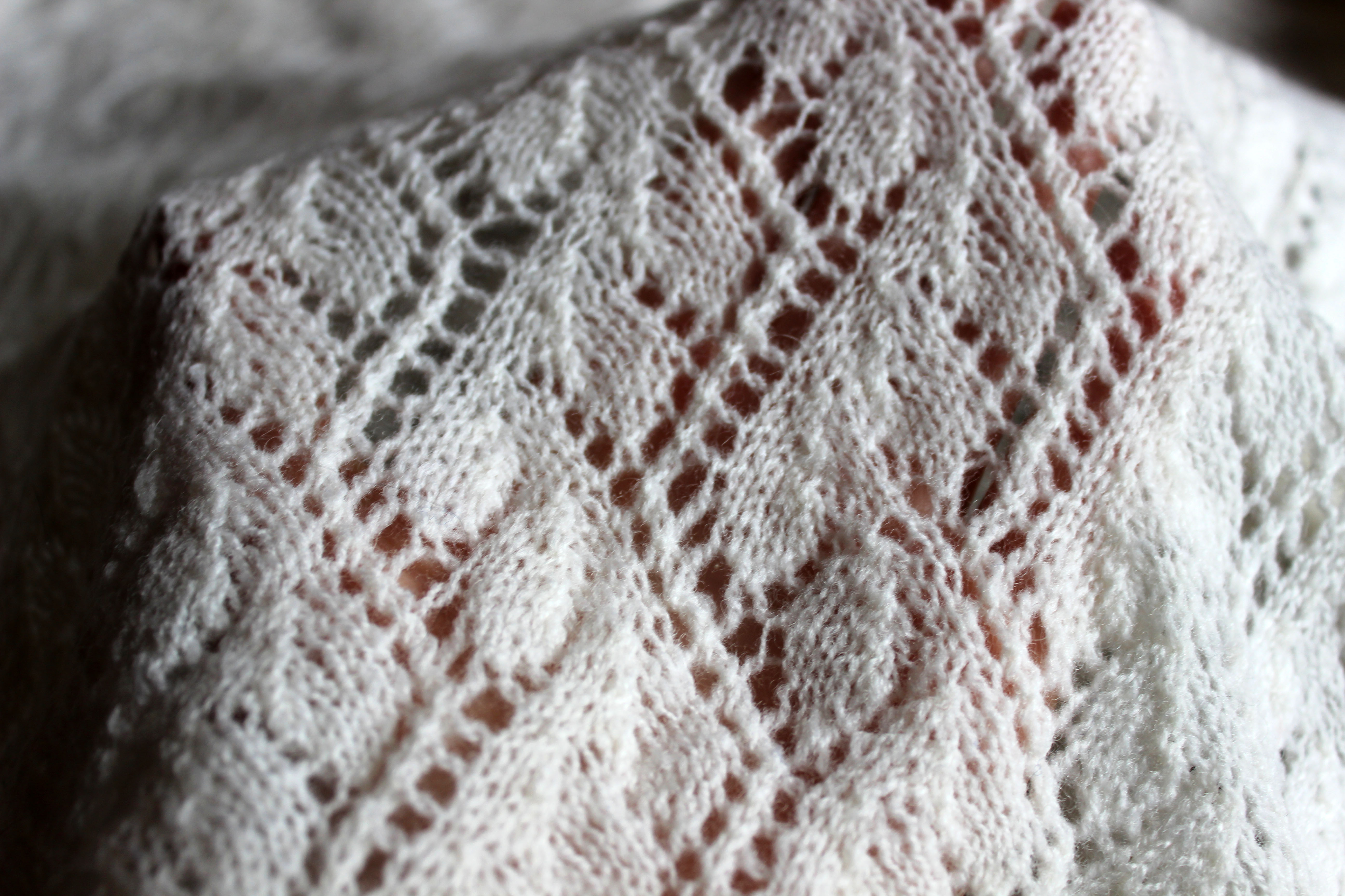 (sorry its a bit crumbled, I still need to dress it) This lovely jumper is knitted in the ‘Print ‘O The Wave’ lacey pattern, which is one of my favourites. Its knit in Woollen spun 2ply Lace which makes the pattern a bit thicker looking than it does in 1ply, you can see it better with my hand behind it here