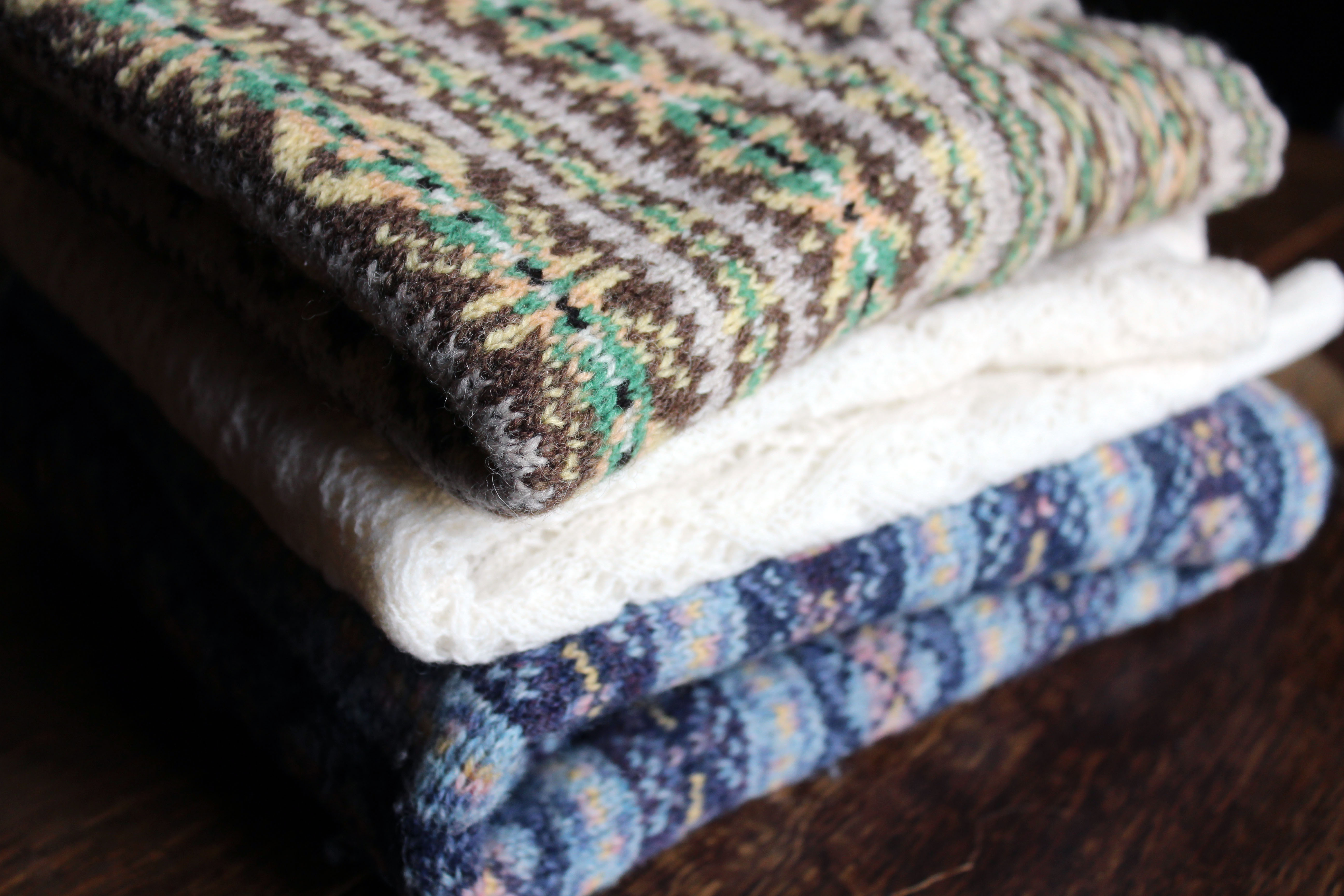 IMG_2486No, I haven’t been ferociously knitting.. well I have, but not these things. These are three very Shetland things, made in Shetland Wool that through the wonder of eBay (to detrimental effect on my bank balance as per) I have brought back to Shetland. Much thanks have to go to my colleague and bezzie work pal Sandra who is a pro at finding Fair Isle and Shetland knitwear on eBay and rather than be selfish and buy it herself, she shows me and I buy it… although quite often we both find it and show each other!