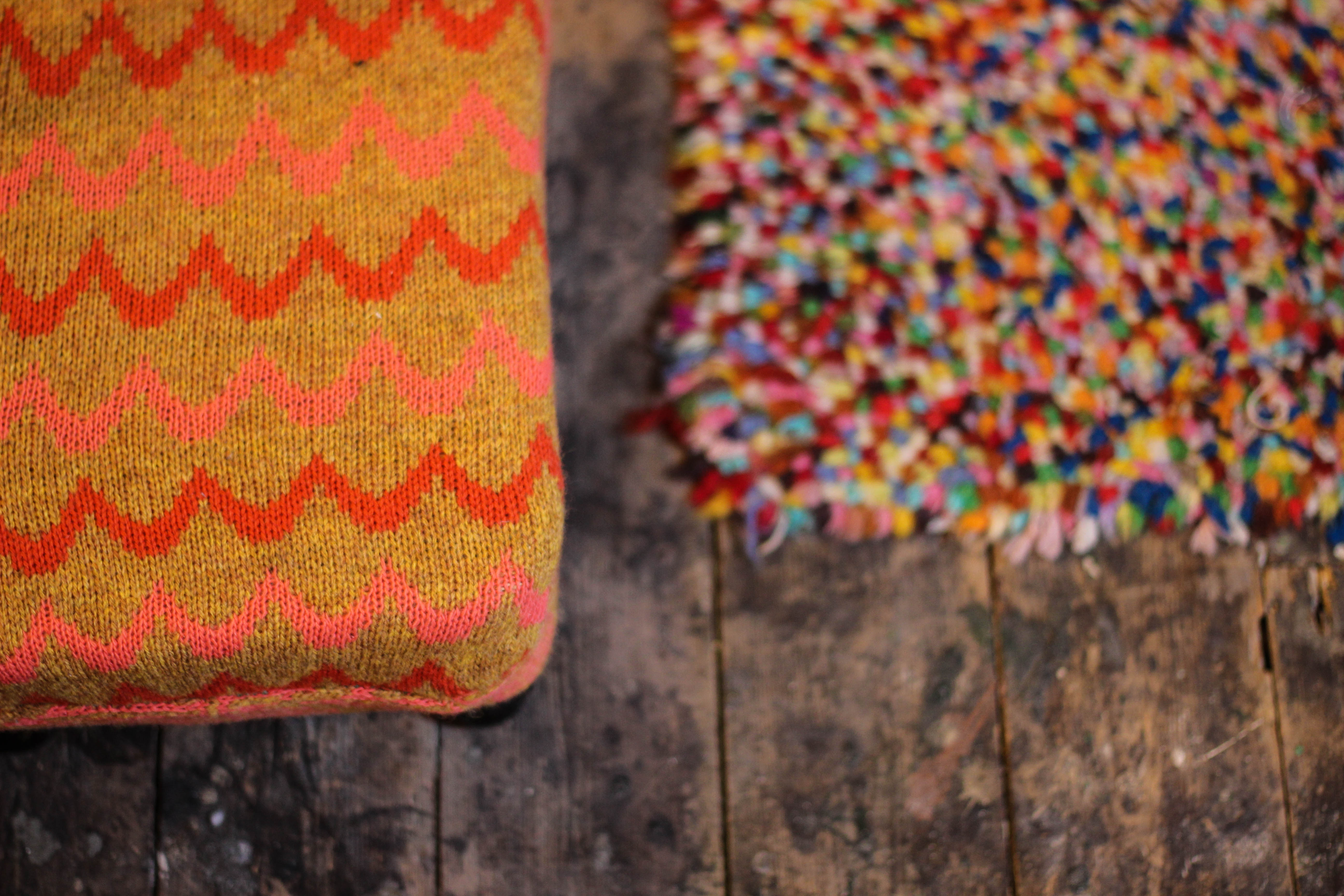Its also the perfect place for things like this rug which was made by my Great Granny. Its just a simple latch hook rug but I love all the colours. I’ve also been able to make use of some of the things I made at college, like this foot stool which goes nicely with my rug..