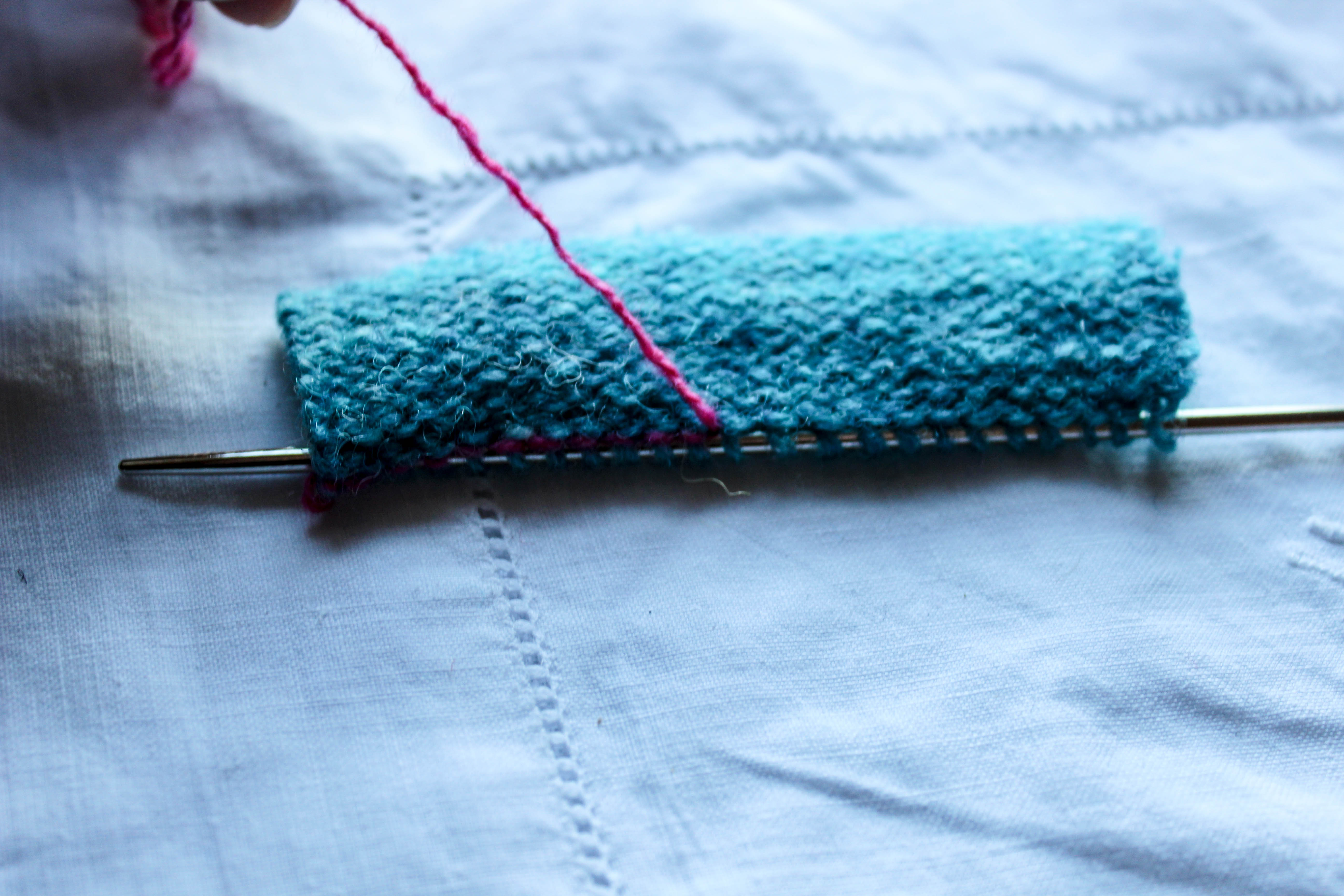 This is so cool! I’m more of a machine knitter myself and the though of hand knitting plain knit for so long is depressing. I have never though of doing this, I have to try. :)