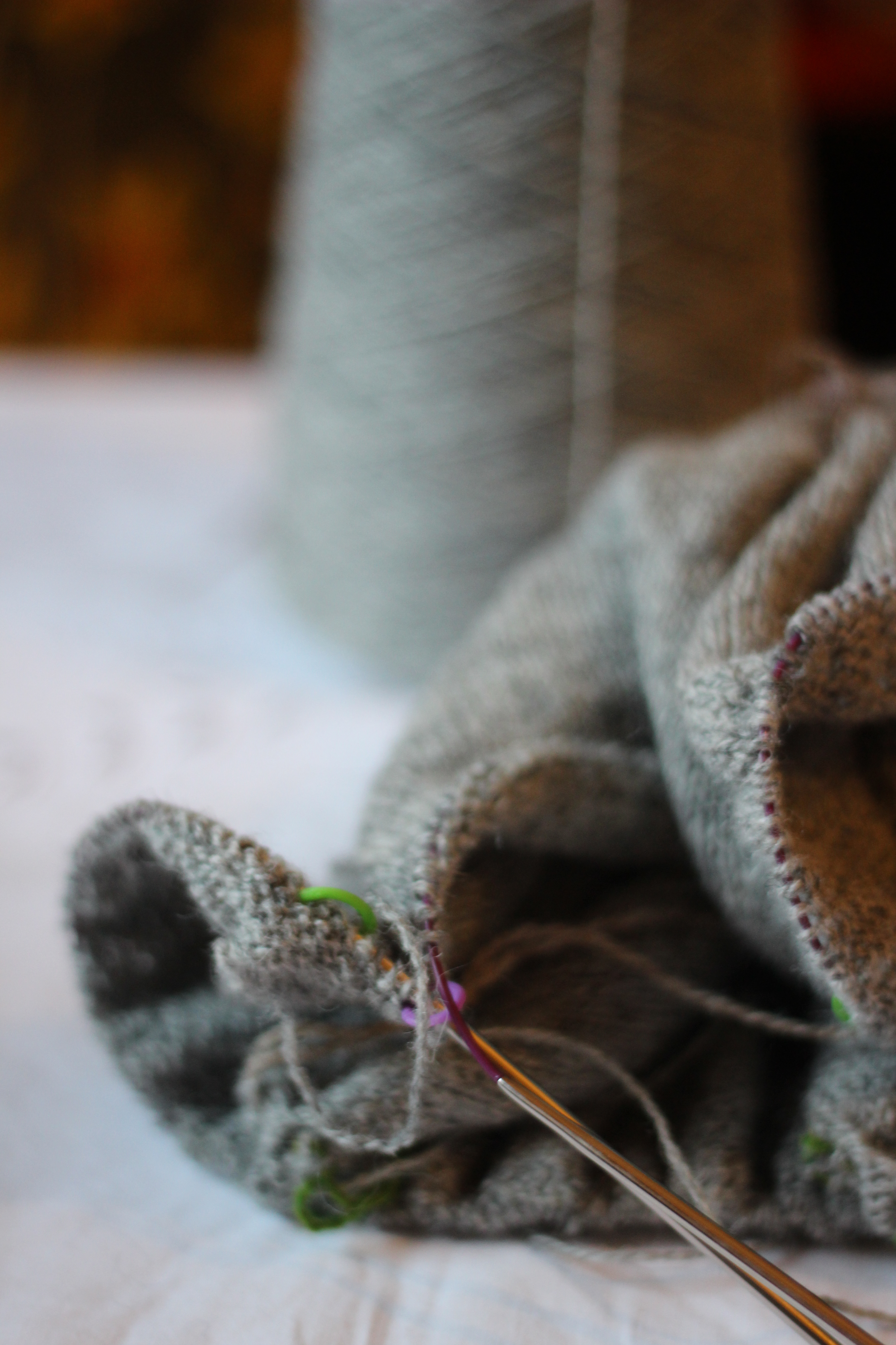 I'm knitting Ásta Sóllilja from Kate's Yokes and hope to have it finished by mid january for my birthday! I too find that bulkier yarn is super hard on my wrists and shoulders so those projects take longer to finish.