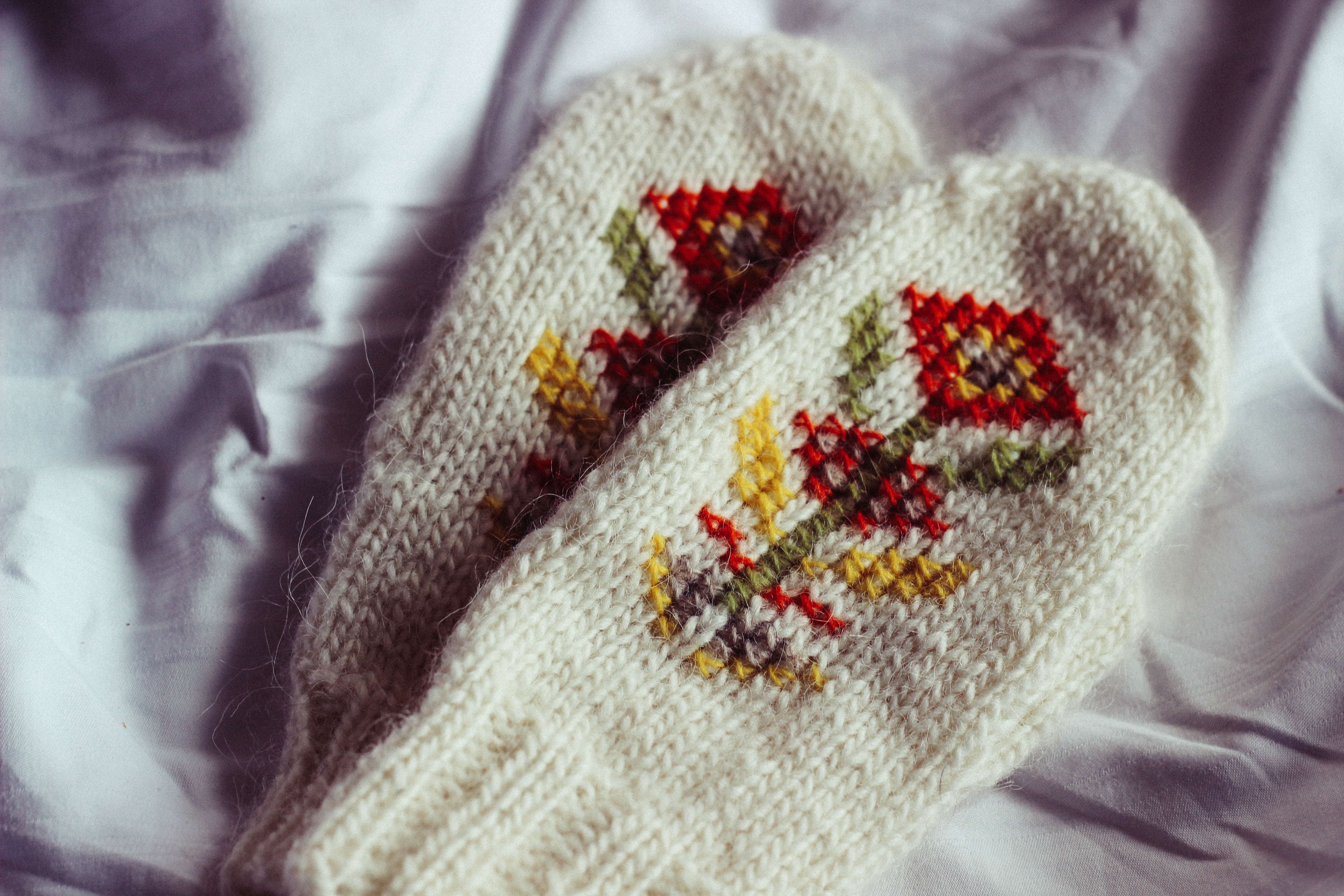 4. This is cool sightseeing. The embroidery pieces were amazing. I found the garter stitched insoles such a neat idea. Your friend is fun and cute and looks terrific in her Gamaldags. I like how she did cross stitch on top of the cozy mitts for you.