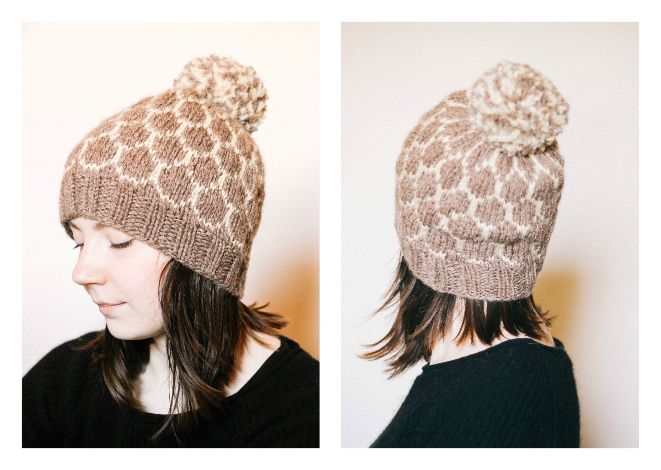 Of course it is topped with a nice pompom (you know I love a good pom pom!!) I knit the sample in Jamieson & Smith Shetland Chunky which is a lovely worsted spun heavyweight aran, I chose the naturally inspired Dumba and Kirn Mylk but it would look equally nice in any of the shades.I also fancy knitting myself a version using Alafoss Lopi, or even Brooklyn Tweed’s brand new yarn Quarry which I treated myself to a few skeins last week.