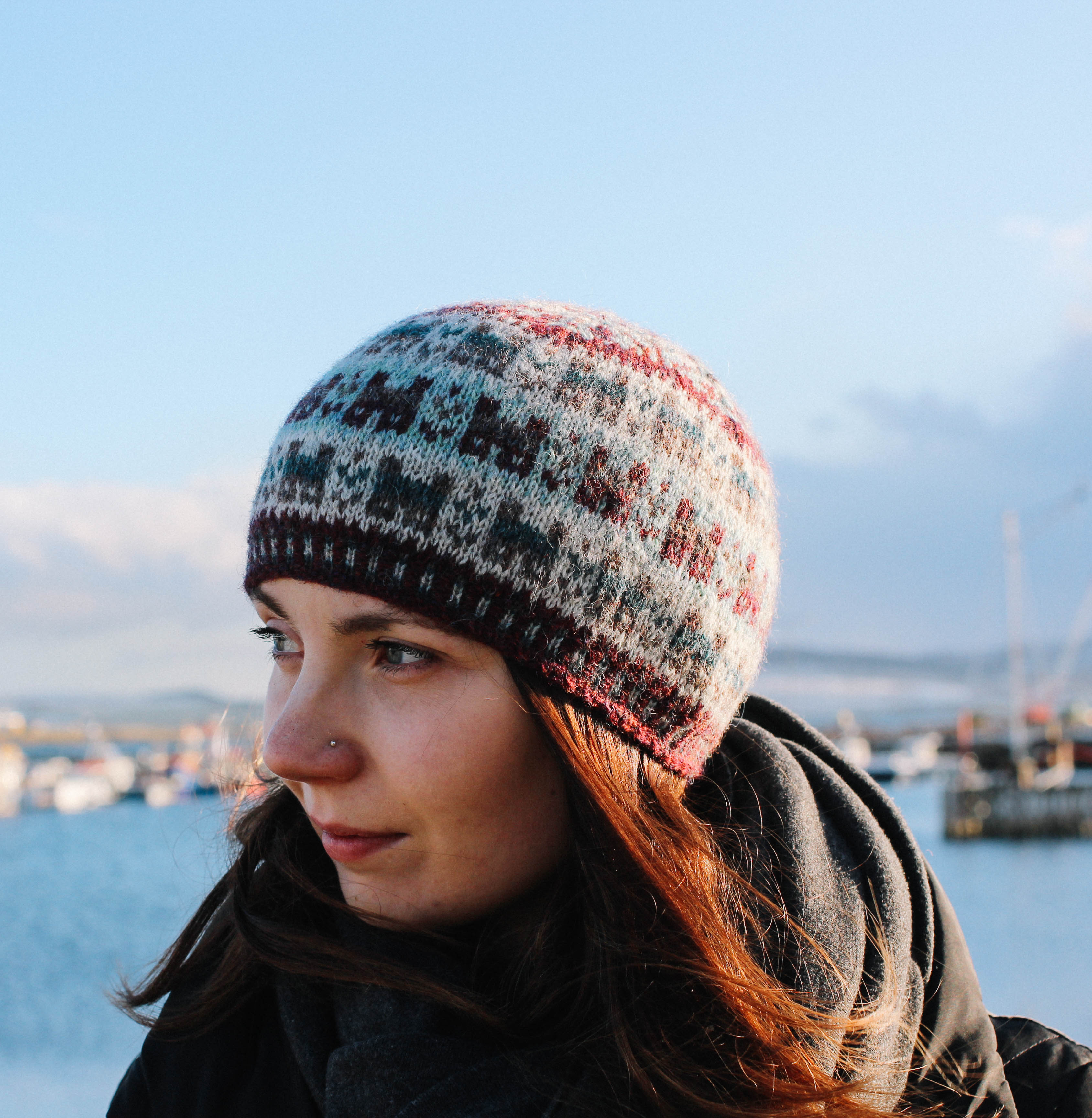 13. I picked up a copy of your Crofthoose hat pattern when I visited Shetland in June last year. It’s many years since I’ve knitted, but the pattern inspired me to have a go. I made it in natural jumper weight wools from Jamiesons; it was a lot of fun to make and I am so pleased with the fit and how it looks. I’m wearing it a lot.