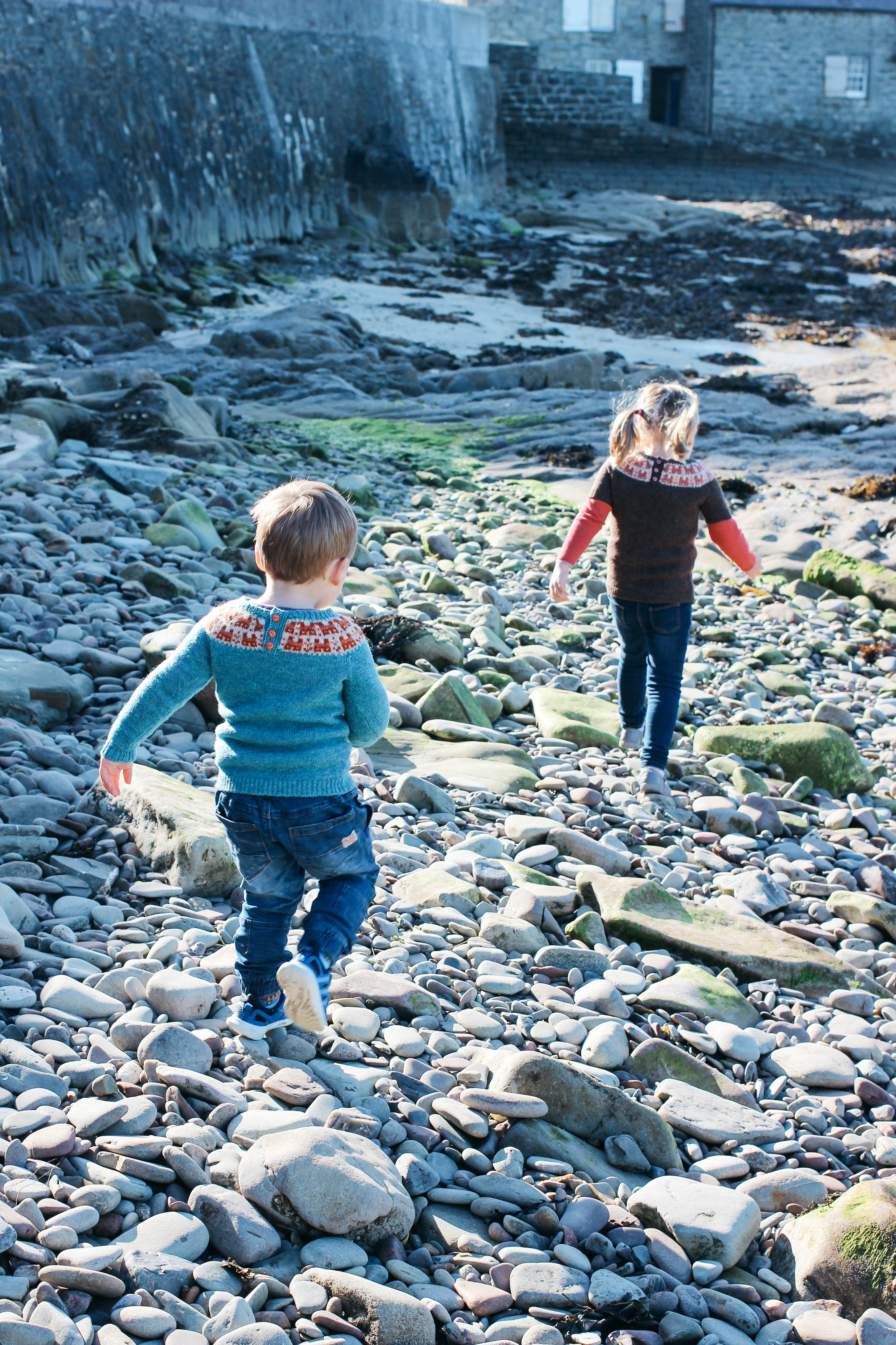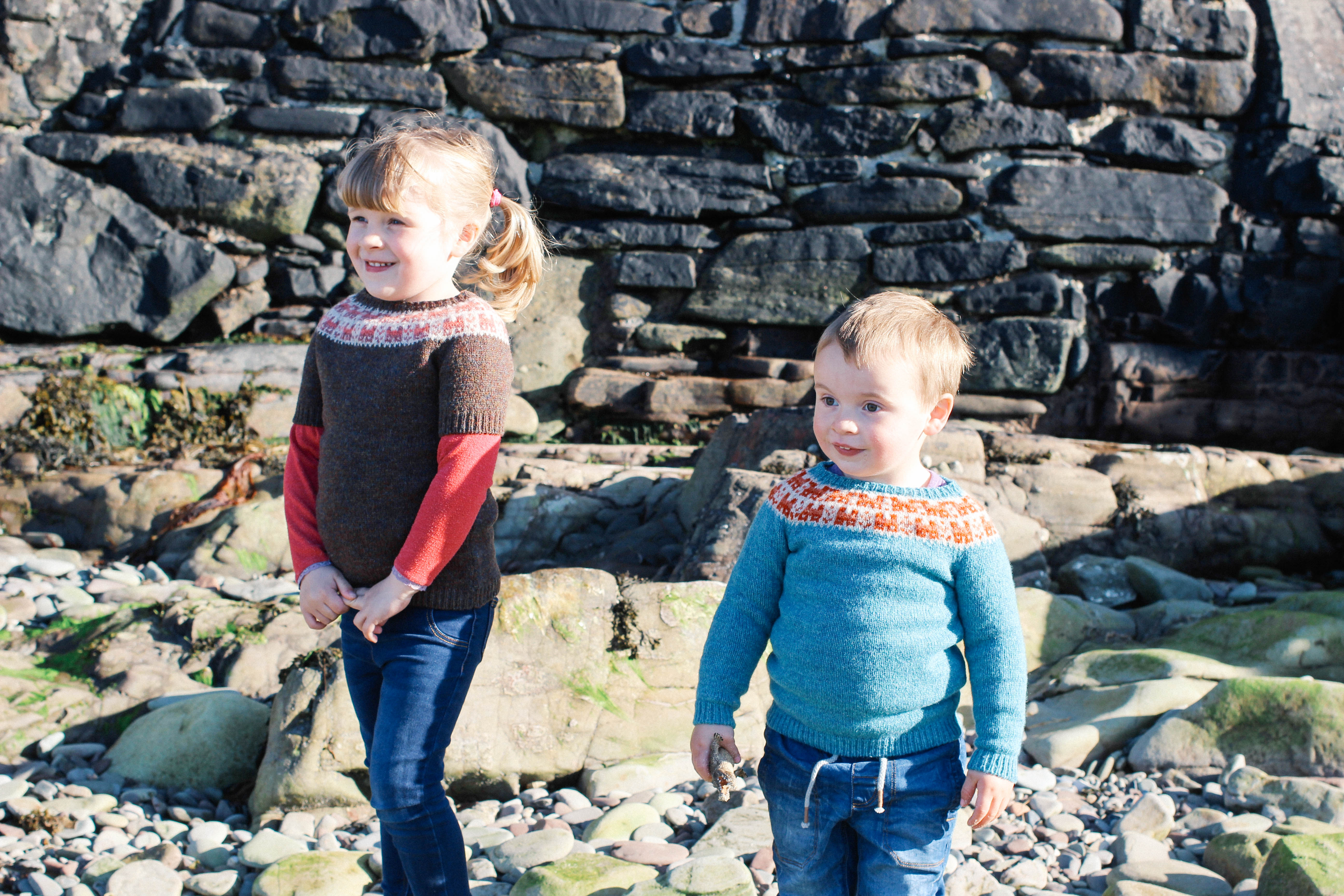 At the end you reinforce the steek (by hand sewing/machine sewing/crochet) and cut it open before knitting a short buttonband for easy getting on and off, someone mentioned to me that buttons are not good for girls with long hair so you could easily replace them with snap closures if you wanted to, I love choosing buttons to go with things though! I’m really pleased with how this came out, and I’m also really happy with the photos, of course I’m biased but my niece and nephew really are quite cute!!