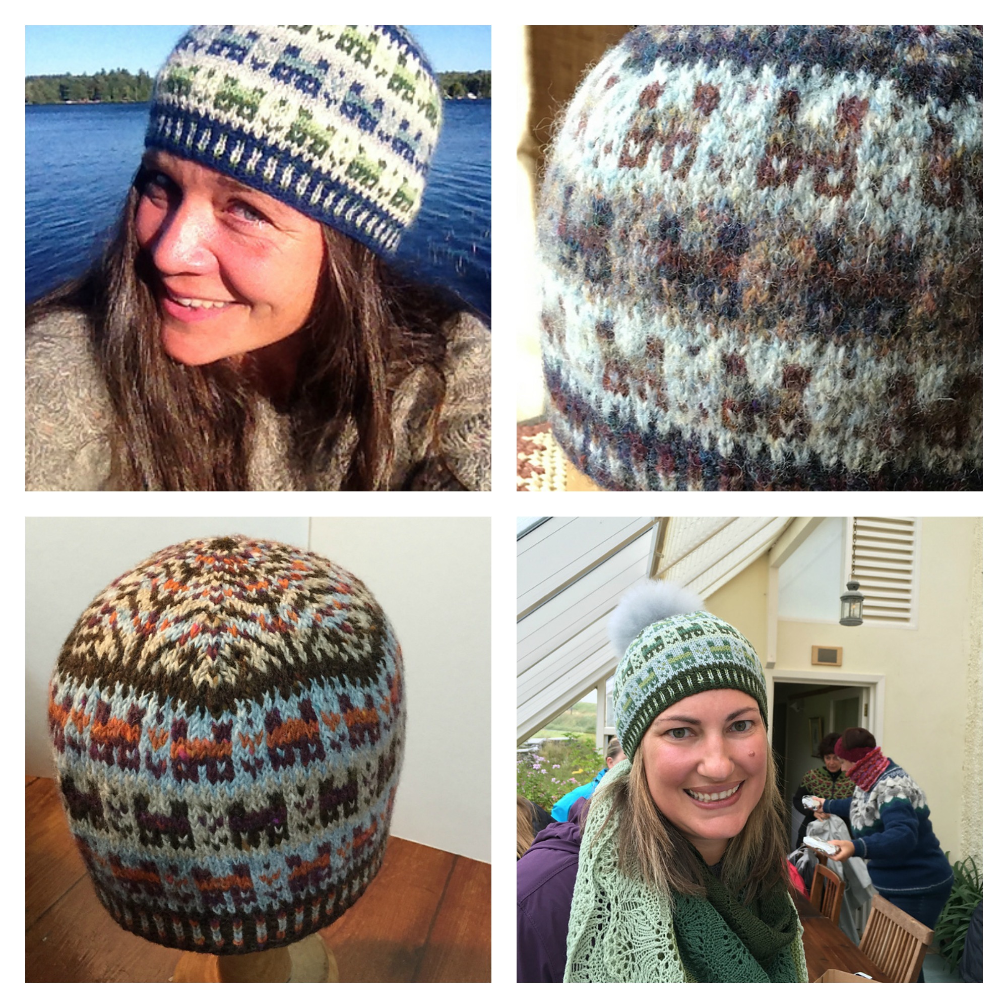 All so lovely and colorful! I struggled with my colors wanting to make a hat that looked like Shetland. I ended up with red, black, grey and white. Therefore I vote for the black, grey and white one (second down on left) as one that IS Shetland. See you at Wool Week!