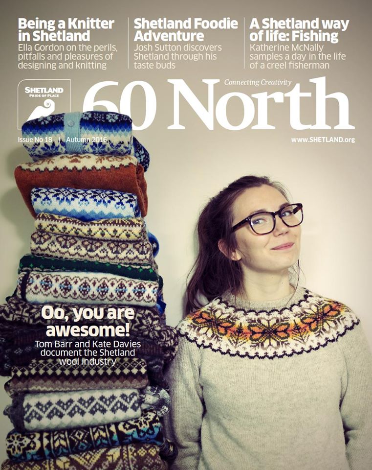 SO i will definitely be keeping warm in Shetland this winter! rather aptly for the end of this post today the newest 60 north magazine was announced featuring a photo of myself and some (pah) of my collection on the cover.. If you missed out on my talk at wool week I have written a piece about it – it will be out soon. The photo was taken by Tom Barr for him and Kates new book Shetland Oo which is also coming out very soon!