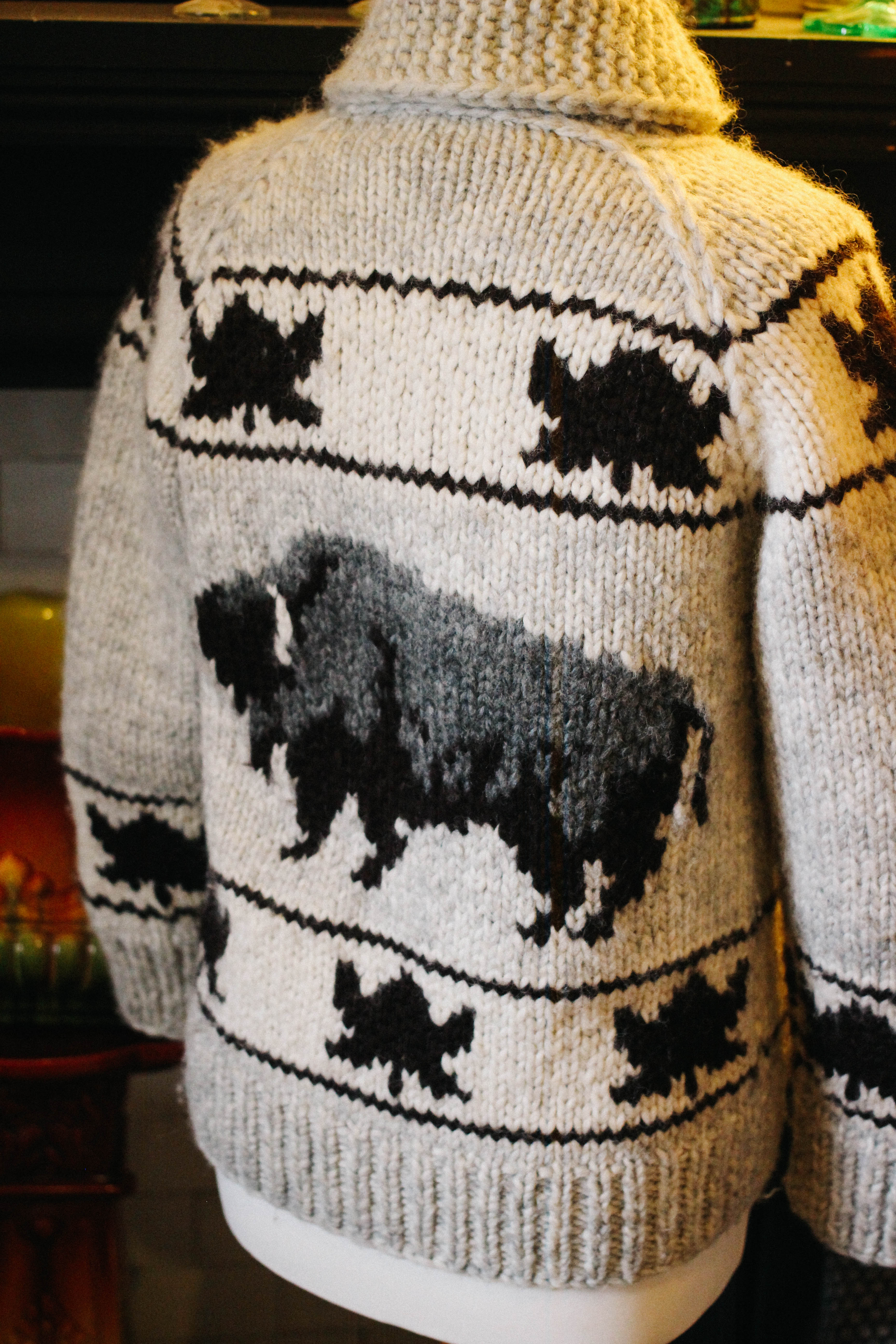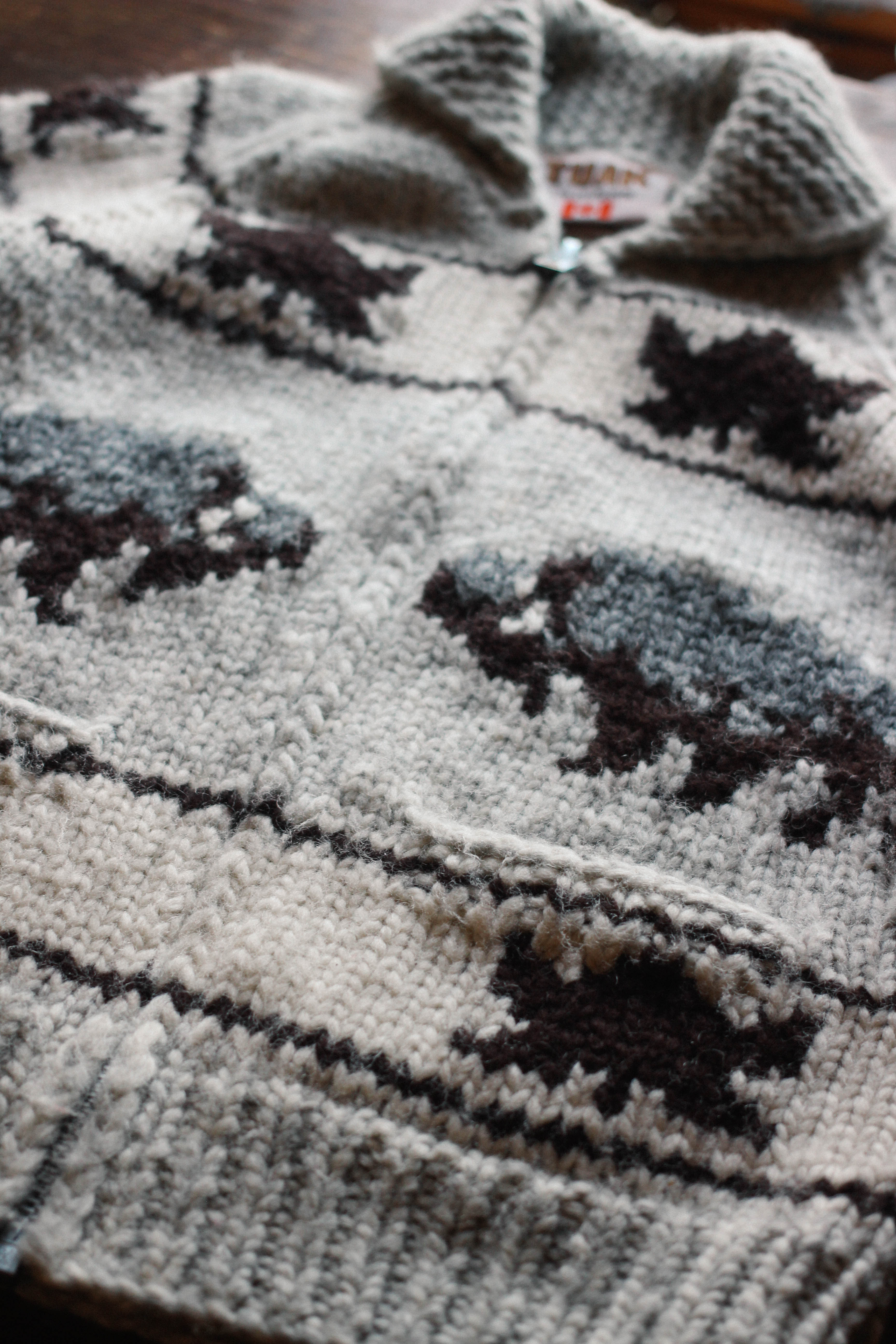 The last thing I’m going to share is another Cowichan cardigan featuring Buffalos and Canadian leafs which also came from ebay, it is hand knitted and so very warm