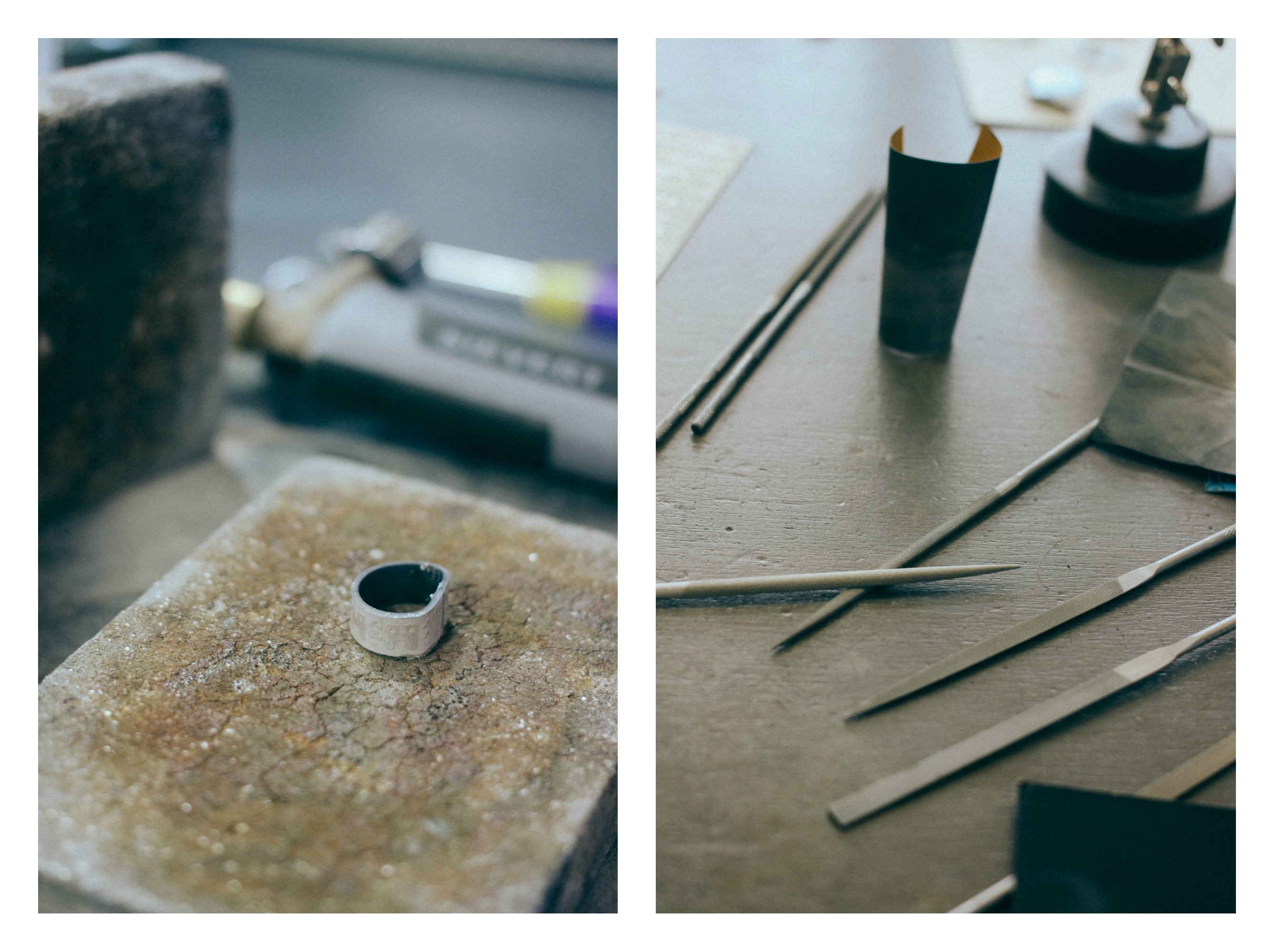 Mike had me sawing and filing quickly and I was amazed how quickly the ring began to take shape. I’m not known for my strength (ahem, understatement of the century) so i definitely worked for my jewellery. There are lots of steps and it was a really interesting day. Mikes peerie studio is so nice and Gill made us lovely soup for our lunch so it was a great day oot of the toon for me!