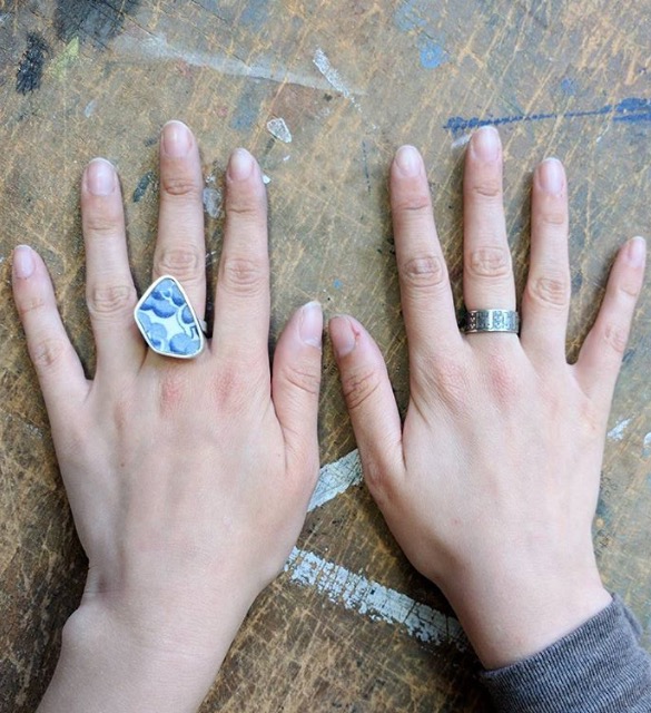 Anyway, this ring was more fiddly as we had to make the frame for the pottery and then cut it down to fit but again I’m so glad about how it came out. I love to think that someday this was a plate or something then it lived in the sea for a while and now it’s on my finger.. haha