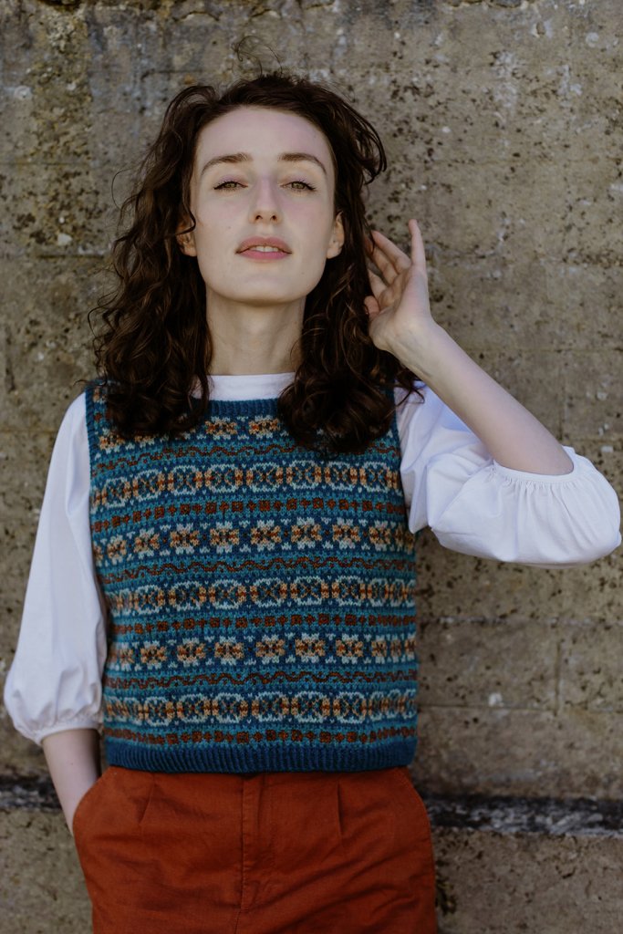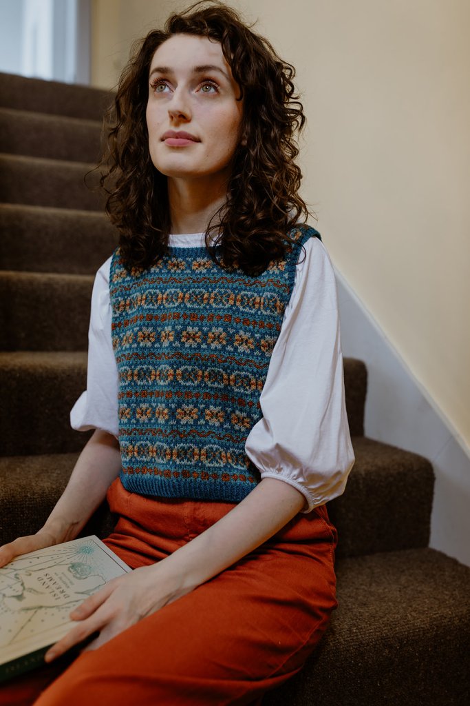 hello everyone, now the Shetland Wool Week 2021 Annual is available and making its way to people I thought I’d do a post about my Roosty Tank Top design.
