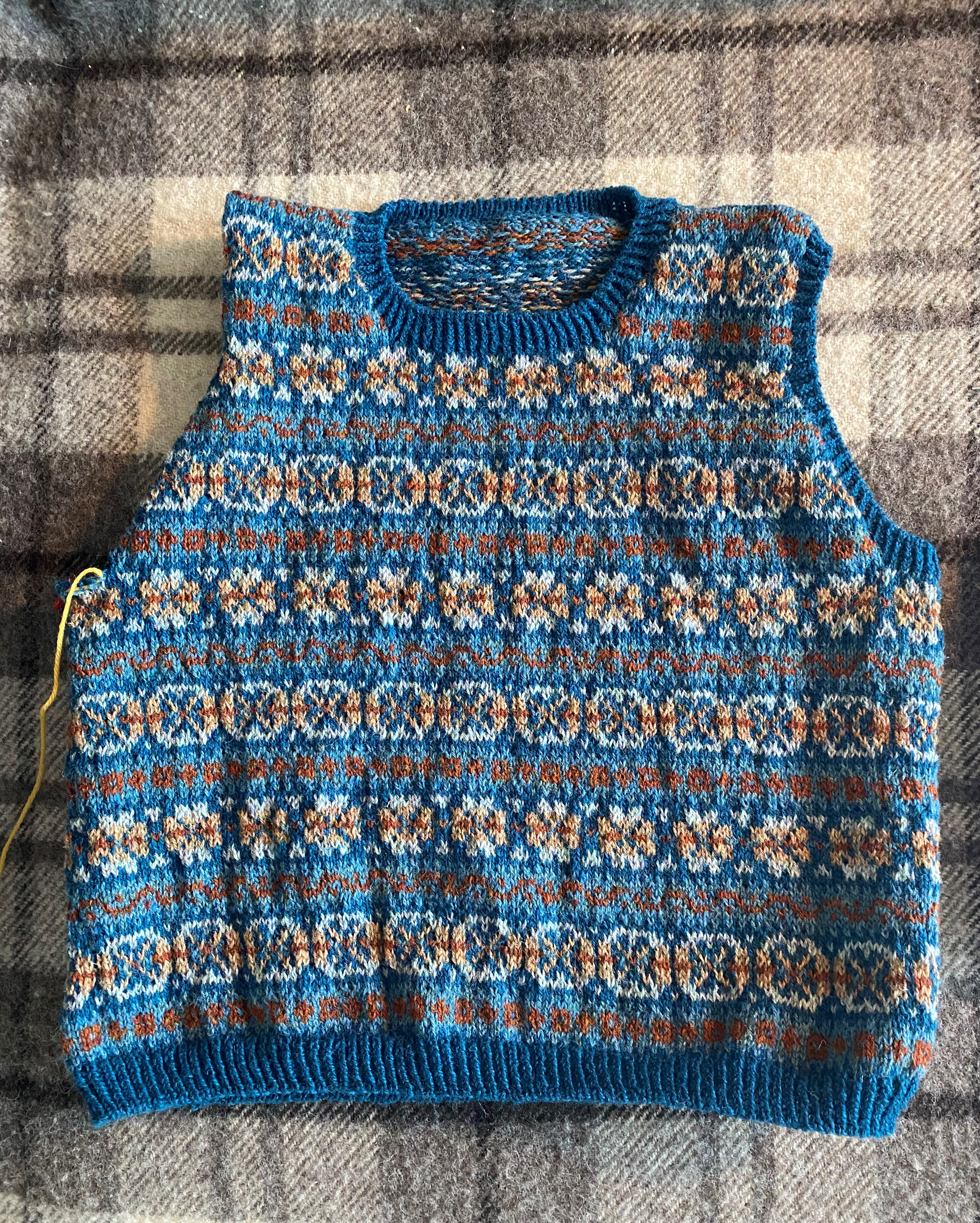 So, that’s the story of the Roosty Tank top, knit during some of the worst part of 2021 in many ways. I’m proud of it, my first all-over Fair Isle design. You can find the pattern in the Shetland Wool Week 2021 Annual, always an excellent purchase if you are interested in Shetland and Shetland Knitting.