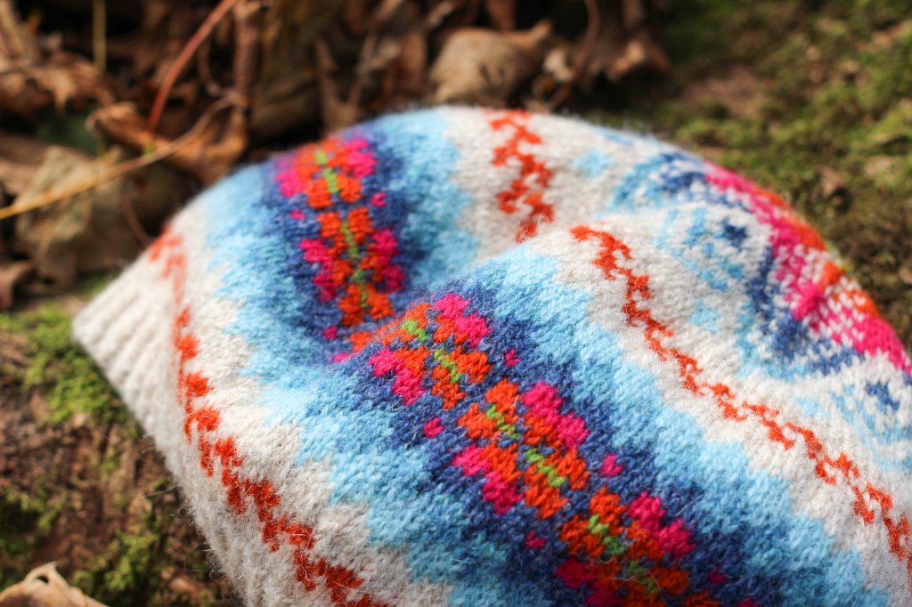 This pattern originally featured in the Kate Davies Millarrochy Heids book, I designed it with Kate’s lovely Millarrochy Tweed yarn, but there are a couple of shades I used which are not available anymore, so I finally made another version in Jumper Weight: